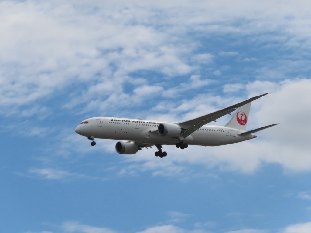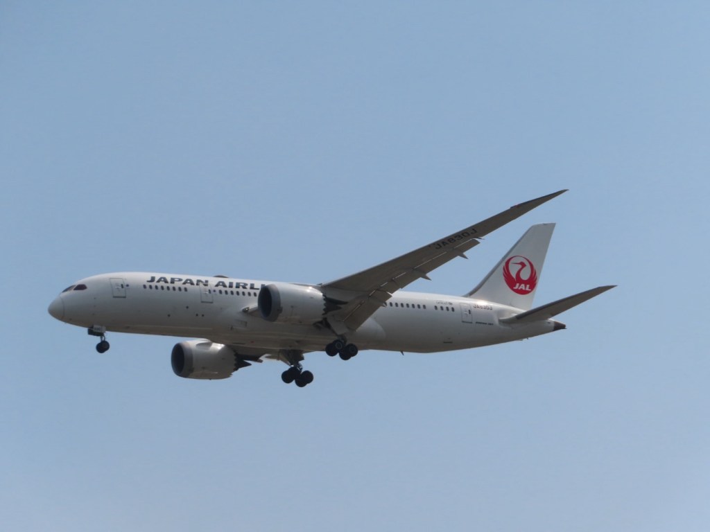 翌10/2の同時刻に撮影したJL081便ですが、この日から081便は同じB787-8の胴体延長型-9での運航となり、初日はJA873J号機でした。ちなみに、このJA873J号機は今年4月29日に、戦闘状態にあるアフリカ・スーダン滞在の邦人を避難の際に、政府によるチャーター便任務を遂行した機体でもあります。